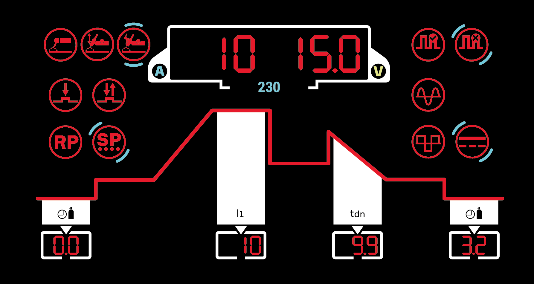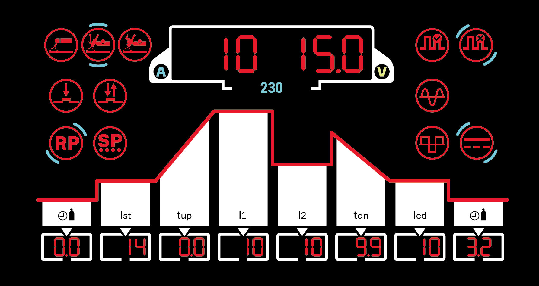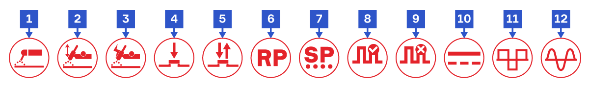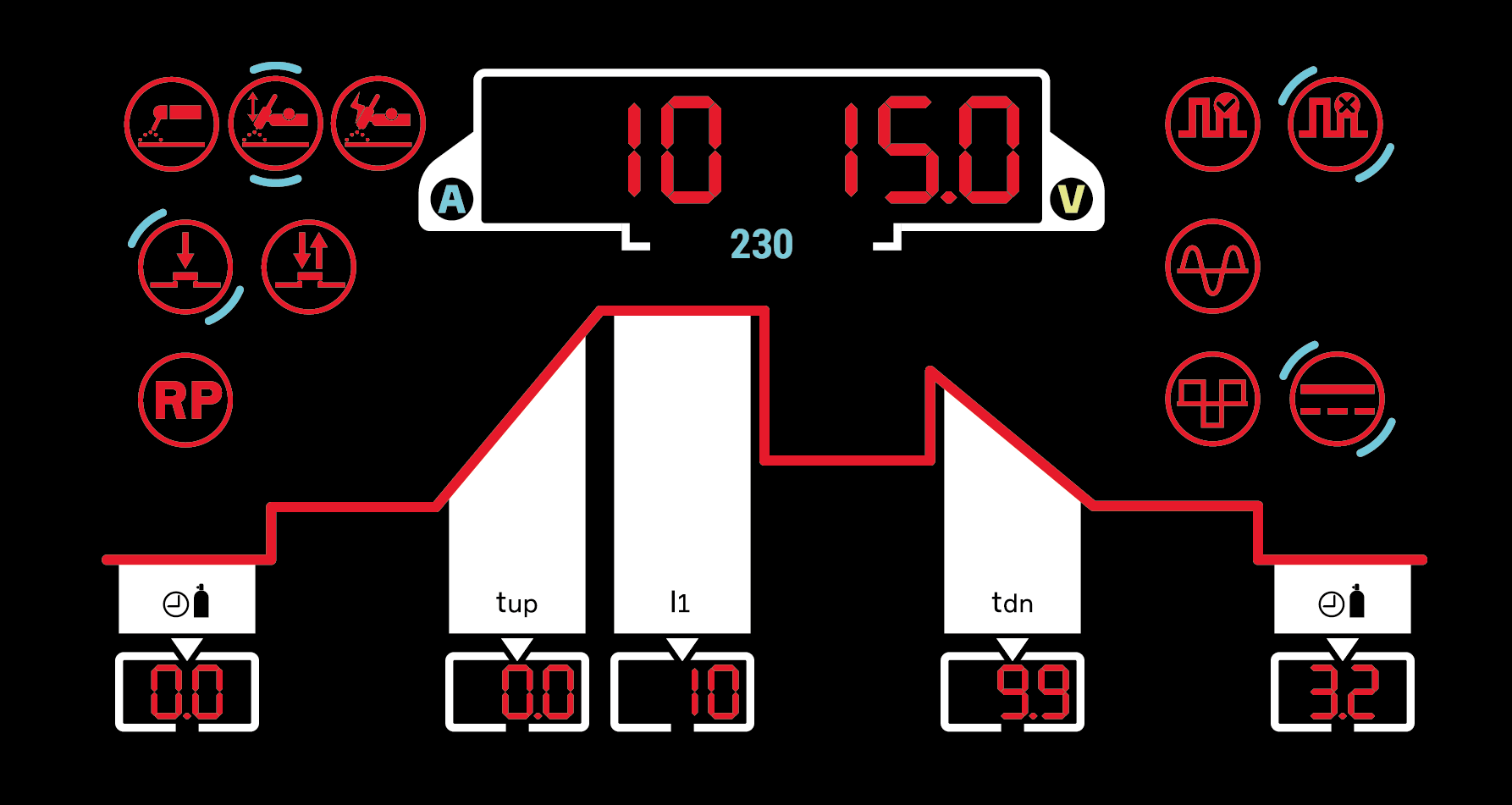 - RP (Repeat) – режим циклического повторения сварочной циклограммы